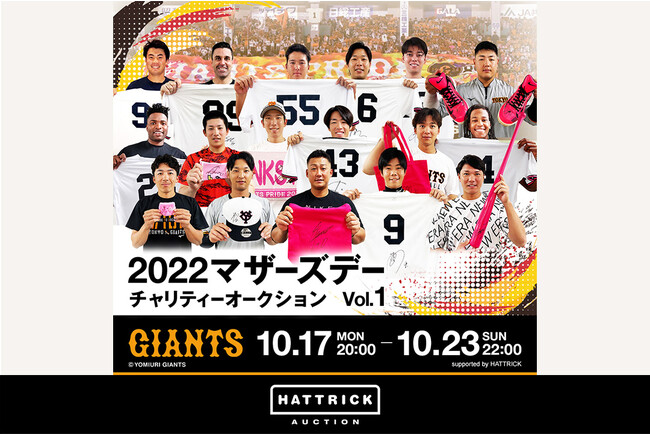 あらゆるステークホルダーへ人生を変える価値を提供し、一人ひとりが「らしく、生きる。」世界の実現を目指すバリュエンスジャパン株式会社(本社:東京都港区、代表:六車 進、以下 当社)は、同社が運営するスポーツチーム公認オークション「HATTRICK(https://auction.hattrick.world/)」にて、読売ジャイアンツ2022マザーズデー チャリティーオークション【第1弾】を2022年10月17日(月)、【第2弾】 を10月24日(月)より開催いたします。