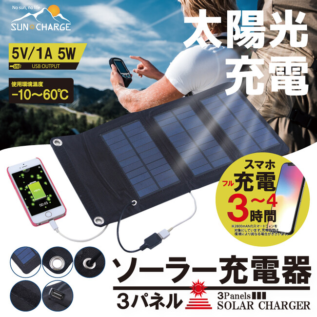 太陽光で充電!アウトドア!防災に!