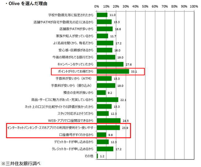 株式会社三井住友銀行(頭取CEO:福留 朗裕、以下「三井住友銀行」)と三井住友カード株式会社(代表取締役社長:大西幸彦、以下「三井住友カード」)は、2023年3月より個人のお客さま向け総合金融サービス「Olive(オリーブ)」の提供を開始いたしました。受付開始直後より大きな反響をいただき、サービス開始から約6カ月で、アカウント開設100万件を突破いたしました。三井住友銀行の新規口座開設では最も早い達成となり、口座開設されたお客さまからも、特にポイント貯まりやすい点において高い評価を頂いております。