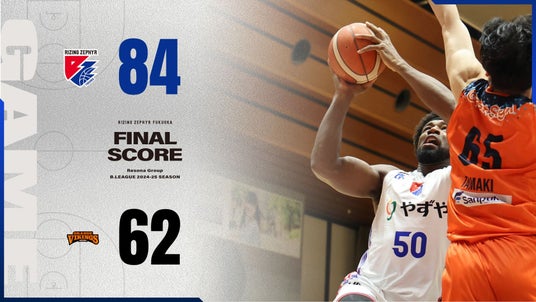 2025年3月28日(金)に開催された、りそなグループ B.LEAGUE 2024-25 シーズン【ライジングゼファーフクオカ vs.愛媛オレンジバイキングス】は、“福岡 84-62 愛媛”で福岡の勝利となりました。