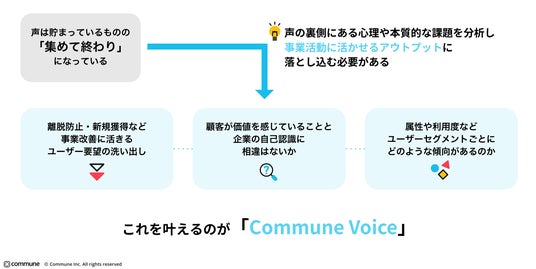 相互交流で信頼を育む「Commune」を提供するコミューン株式会社は、顧客の声(Voice of Customer、以下 VoC )や従業員の声(Voice of Employee、以下VoE)の分析サービス「Commune Voice」の本格提供を開始したことをお知らせいたします。