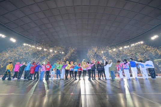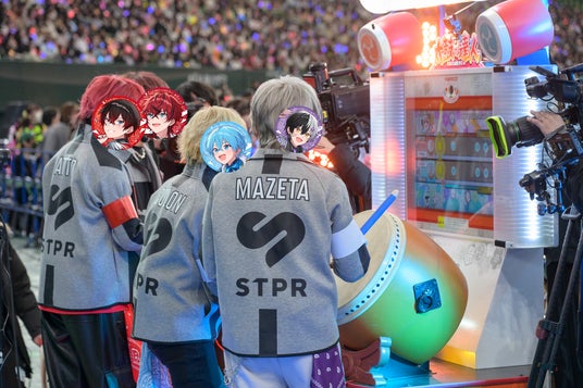 ステージ上に置かれたすべての風船を先に割ったチームが勝利をつかむ風船割りで、「家に帰る道中風船を割り続けた」と競技への余裕さを語る白組のすとぷりジェルと紅組のAMPTAKあっとが突然一騎打ちを始めたことも、ルールに縛られないエンタメ性あふれ、会場を沸かせたワンシーンに。また、4月5日(土)には、紅組に、思い出系ネットパフォーマンス集団・フィッシャーズのモトキ、ダーマ、マサイ、白組には、カラフルピーチのたっつん、ゆあんくん、なおきり、シヴァと強力な助っ人も駆けつけ、モトキとたっつんによるぷよぷよテトリスにはそのレベルの高さにドーム全体から驚嘆の声があがった。アリーナ席側に降りて対決した太鼓の達人で、ガチ勢組のめておらのLapisとカラフルピーチのゆあんくんが、最上級の難易度の「おに」で「スキスキ星人」をプレイし、フルコンボを達成したこともハイライト。UFOキャッチャーでは、すとぷりのぬいぐるみを見事に獲得したすとぷりのさとみと、めておらのメルト・ダ・テンシがアリーナ席に向かってぬいぐるみを投げる場面も。2日目ラストのゲーム、スプラトゥーン3を終え、勝利を収めたのは、「昨日は砂になったんですけど、今日負けたら廃部です」と言い切ったころんの白組。つまるところ、勝敗に左右されない、エンタメの極みだった。