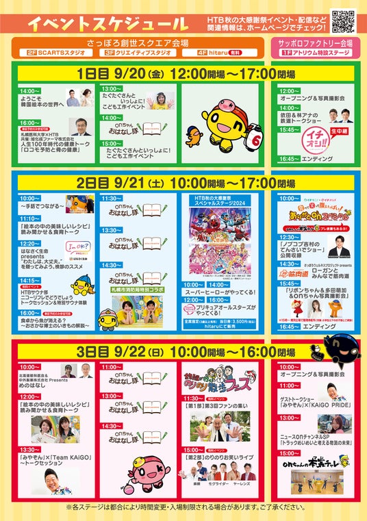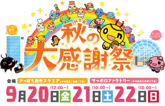 HTB北海道テレビが総力をかけて挑む「HTB秋の大感謝祭」が9月20日(金)~22日(日)の3日間にわたって開催!今年も色んなことにチャレンジする大感謝祭になっています!