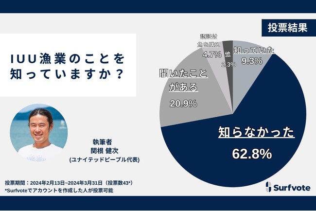 ユナイテッドピープル株式会社代表取締役の関根健次氏が、「違法・無報告・無規制」に行なわれているIUU漁業についてSurfvoteで課題提起。