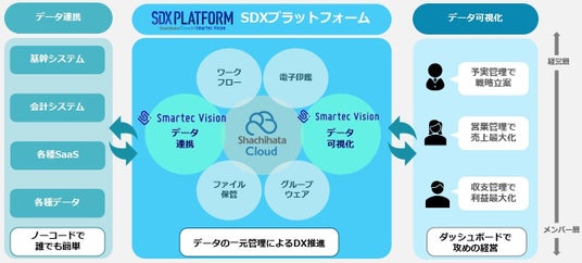 シヤチハタは、2020年に契約・承認プロセスのデジタル化を推進するShachihata Cloudをローンチし、2024年には企業のデータ活用を強化し、企業の意思決定の高度化と生産性向上を支援するSmartec Visionをローンチしました。そして今回、企業の多様化するニーズに応え、DX推進をよりスムーズかつ効果的に実現するため、「Shachihata Cloud」と「Smartec Vision」の強みを融合させた「SDXプラットフォーム」が誕生しました。