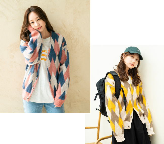 今回の新作商品は秋のおしゃれが楽しくなるようなカラーアイテムを多く取り揃えております。ライトオン限定商品ではダイヤ柄のカーディガンやツイード風のニットをレトロビンテージなカラーにて展開。その他チェック柄や無地のカーディガンなど肌寒くなる秋にぴったりな商品を取り揃えておりますので是非ご覧いただき、この秋はBHPCの商品でカラーを取り入れたファッションをお楽しみください!