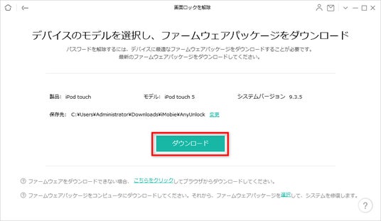 手順3:表示されるデバイス情報を確認し、「ダウンロード」をクリックして必要なファームウェアを取得します。