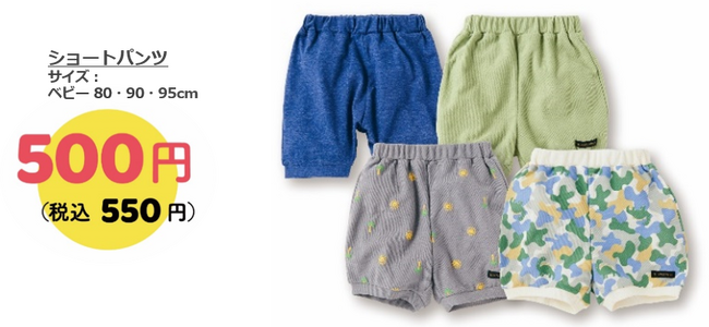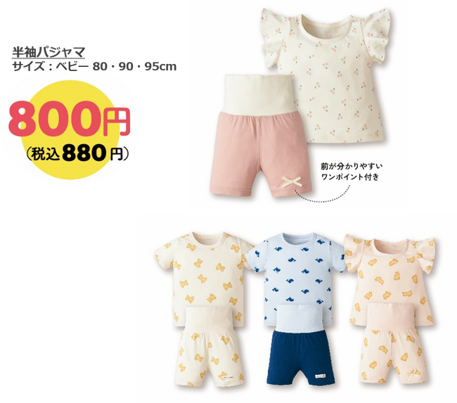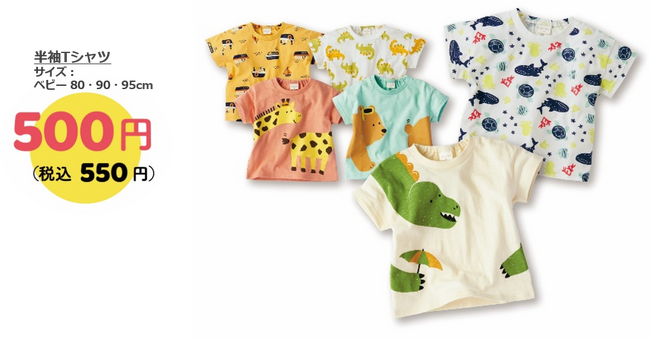 他にもキャラクターTシャツや、新生児が生まれてすぐ着る肌着が10点セットになったアイテムなど、これからの暑い季節に活躍するものばかり!その中から、一部の商品をご紹介いたします。