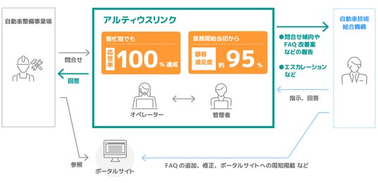 アルティウスリンク株式会社(所在地:東京都渋谷区、代表取締役社長:網野 孝、以下 アルティウスリンク)は、独立行政法人 自動車技術総合機構(NALTEC)のコンタクトセンターを開設し、応答率100%の維持と顧客満足度95%を実現した好事例を公開しました。