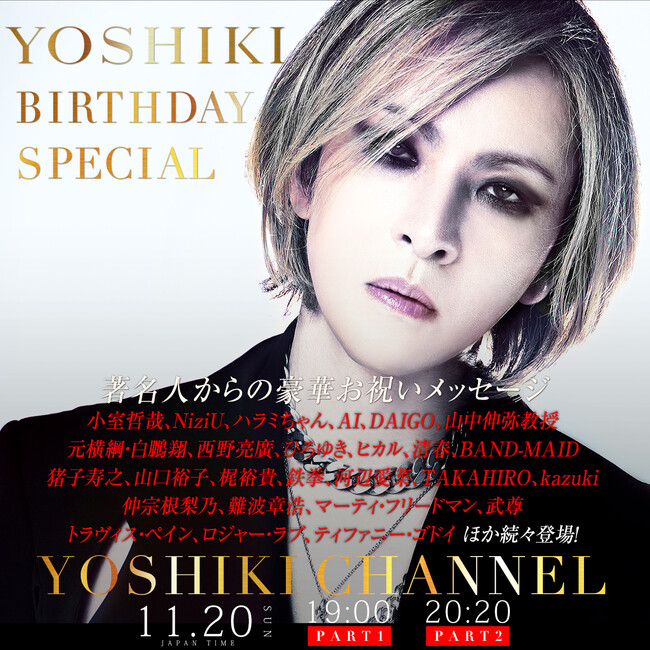 11月20日(日)に、ニコニコチャンネル(日本)およびYouTube Channelメンバーシップ(日本含む全世界)で配信される『YOSHIKI CHANNEL』のYOSHIKI誕生日スペシャルに向けて、豪華著名人からYOSHIKIへのお祝いメッセージが続々と届いている。また、さらなるサプライズもある模様。