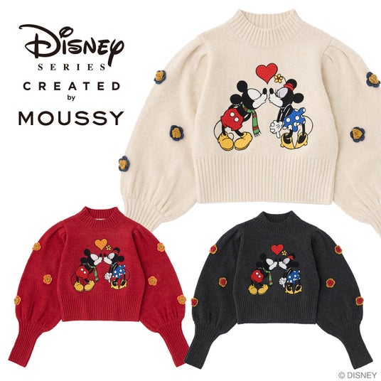 ●〈Disney SERIES CREATED by MOUSSY〉VOLUME SLEEVE KNIT TOP 各12,980円[三越伊勢丹先行販売]