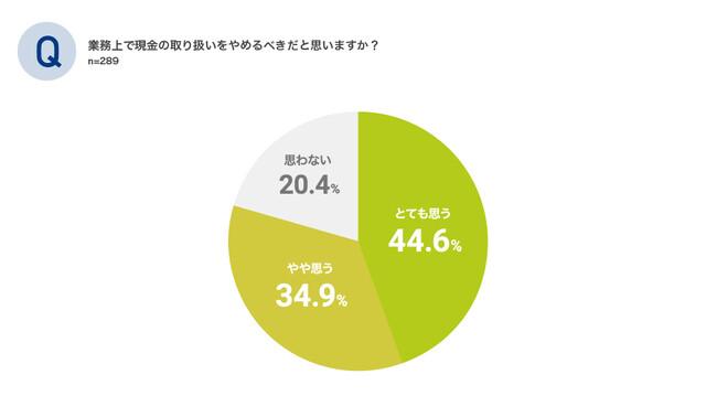 集金を担当する現場作業員で「現金の取り扱いをやめるべきだと思いますか?」の問いに「とても思う」「やや思う」と回答した人の合計は79.5%。