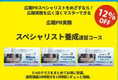 (アドバンス広報実務スキルコース)を組み合わせた特別なコースです。短期間で広報の必要不可欠な