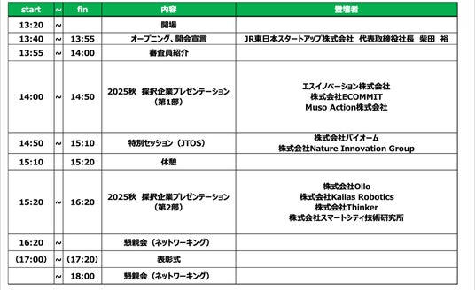 1.JR東日本スタートアッププログラム2025秋の採択企業について