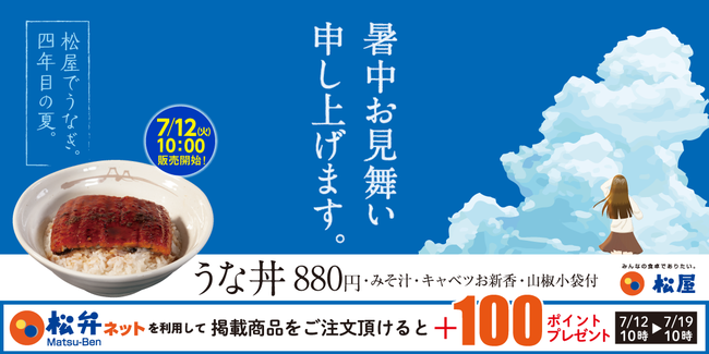 ■松屋のうなぎ、4度目の夏を記念して。通常還元に加え100ポイントプレゼント!