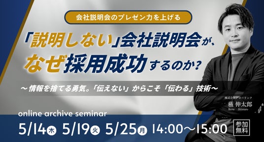 本アーカイブ配信では、「説明会では会社の説明を一切しない」という逆転の発想で移行率を格段に上げた事例をもとに、学生の心を掴む最新の会社説明会の設計方法を解説します。