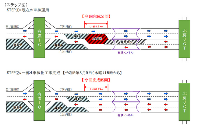 令和5年8月9日(水曜)15時にSTEP(1)からSTEP(2)に車線運用が切り替わります。