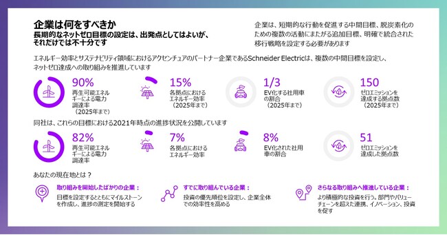 アクセンチュアの欧州地域の最高経営責任者(CEO)を務めるジャン=マルク・オラニエ(Jean-Marc Ollagnier)は次のように述べています。「世界規模で政治、経済、環境が混乱している中、これまで以上に多くの企業が2050年頃までの大幅な脱炭素化を目指しています。前向きな意欲の高まりを心強く感じる一方、目標の達成には排出削減ペースを加速する必要があります。デジタル技術や特定の再生可能エネルギーなどの成熟した技術の価値を最大化しつつ、水素のような新しいソリューション展開を同時に推進することが極めて重要です。企業がネットゼロ目標を達成するためには、あらゆる企業活動にサステナビリティを組み込み、企業の目的、文化、ビジネスモデルを再定義すること、つまり、緊急かつ抜本的な変革が不可欠です」