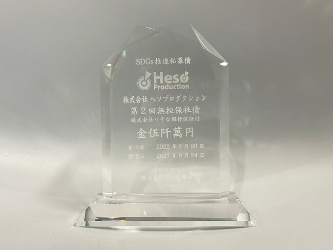 オリジナル商品の企画・制作・販売を軸に、企業・組織のトータルブランディングを手掛ける株式会社ヘソプロダクション(本社:大阪市福島区・代表取締役:稲本ミノル)は、この度、株式会社りそな銀行を引受先とするSDGs推進私募債を発行いたしましたのでお知らせいたします。