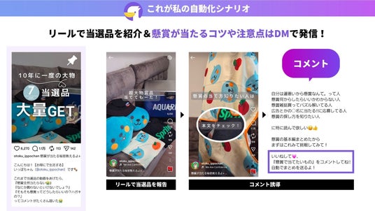リールでは当選品の紹介に絞り、“当てるコツ”など詳細はDMへ集約。