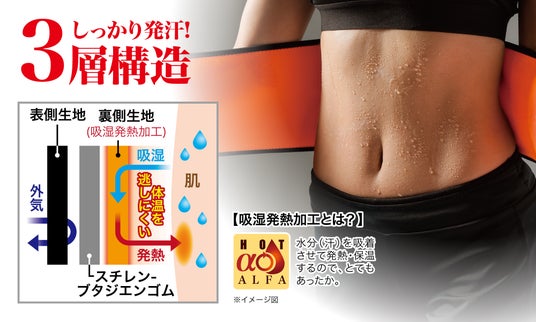 気密性を高める3層構造で体温を閉じ込め、お腹まわりをサウナのような状態。