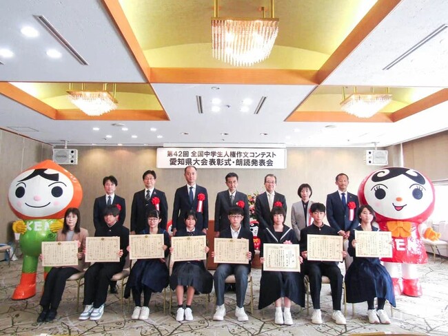 法務省及び全国人権擁護委員連合会では12月4日(月)~10日(日)までの一週間を第75回人権週間と定め、人権尊重思想の普及高揚をはかるための各種啓発活動を実施する中、名古屋法務局及び愛知県人権擁護委員連合会では、人権週間行事の一環として「全国中学生人権作文コンテスト愛知県大会」の表彰式及び受賞作品の発表を行っています。