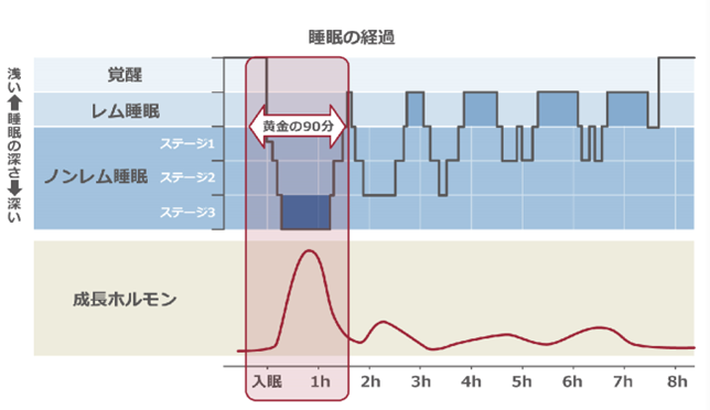 図1:睡眠の経過と睡眠の深さの関係 (出典:「スタンフォード式 最高の睡眠」(サンマーク出版)より改変)