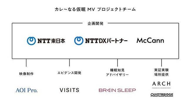 東日本電信電話株式会社(代表取締役社長 澁谷直樹、東京都新宿区)および株式会社NTT DXパートナー(代表取締役社長 遠藤玉樹、東京都新宿区)、株式会社マッキャンエリクソン(代表取締役社長 兼 CEO 森浩昭、東京都港区)は、日本の睡眠課題解消に対してさまざまな企業が共同で睡眠改善に資する新規事業創出やサービス開発、イベントを企画する仮想コミュニティ“Sleep Network Hub 「ZAKONE(ザコネ、以下「ZAKONE」)」”( https://zakone.jp/ )のグランドオープン(2022年9月3日)後、初となる共創施策として 、“視聴しながら仮眠~起床を経ることでクリエイティビティを向上させる仮眠ミュージックビデオ「カレ~なる仮眠」( https://youtu.be/LJP3vvCMmGg )”を2022年10月26日に公開しました。