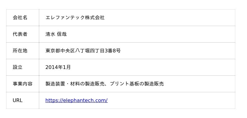 「エレファンテックは、ナノ材料を用いたプリント基板産業の革新に一貫して取り組んでまいりましたが、事業フェーズの進展に伴い、装置を安定的に量産し、世界中のお客様へ届け、各地で確実に稼働させていくことが一層重要になっています。その中で、プリント基板業界における装置サプライヤーとして重要な地位を占める三菱電機との提携は、当社にとって強力な推進力になると考えております。三菱電機の力も活用し、新製法を最速で世界に広めてまいります。」
