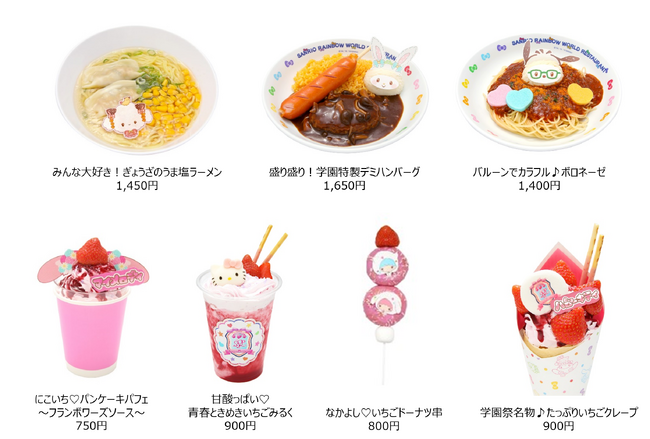 学園祭を楽しむキャラクターたちの姿をモチーフにしたフードが全16種類登場します。
