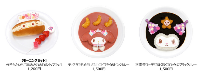 朝の時間帯限定のモーニングセットは、ホイップが入ったコッペパンとオリジナルのいちご串が作れる体験型メニュー。いちご串は、いちご、マシュマロ、ゼリーを付属の串にさし、自分だけのいちご串を作ることができます。キャラクターのチェキ風カードがノベルティとしてもらえるのも嬉しいポイントです。他にも、頭にティアラをつけて特別なおめかしをしたマイメロディとクロミのカレーや写真映え抜群なドリンク、旬のいちごを取り入れたドーナツ串などバラエティ豊か。クレープについているピックは期間ごとに変わるので、何度食べても楽しめること間違いなし。さらに、ビュッフェ形式で食事が楽しめる「館のレストラン」でも、イベントに合わせたメニューが新たに登場予定です。