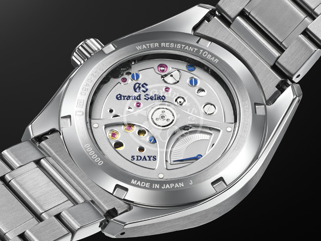 本モデルは、グランドセイコー専用の次世代スプリングドライブムーブメント「キャリバー9RA2」を搭載しています。サイズの異なる大小2つの香箱「デュアルサイズバレル」を採用することにより、最大巻上時には約120時間(5日間)にわたって動き続け、ぜんまいで動く時計としては驚異的な平均月差±10秒の高精度を実現しています。自動巻き上げ機構である「マジックレバー」を中心位置からオフセットすることで薄型化にも成功しています。