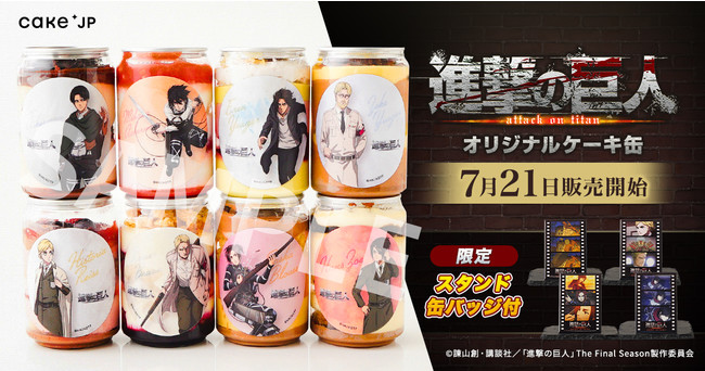 ケーキ・スイーツ専門通販サイト「Cake.jp(ケーキジェーピー)」を運営する株式会社Cake.jp(本社:東京都新宿区、代表取締役:高橋 優貴)は、TVアニメ『進撃の巨人』とのコラボ商品としてケーキ缶を7月21日(木)より販売開始します。