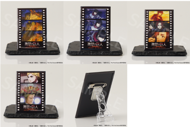 TVアニメ『進撃の巨人』の場面写を映像フィルムに模した缶バッジをお付けします。スタンド仕様にもできるため机などに飾ってお楽しみいただくこともできます。