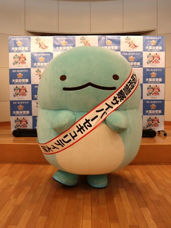 主に小学生やその保護者の方をはじめとする府民の方々を対象にスマートフォンとSNSの安全な使い方について普及促進をするため、子どもから大人まで幅広い層に人気の「すみっコぐらし」が起用され、2023年12月11日(月)に大阪府警察本部にて、委嘱式が行われました。委嘱式にはすみっコぐらしから代表して「とかげ」が出席しました。