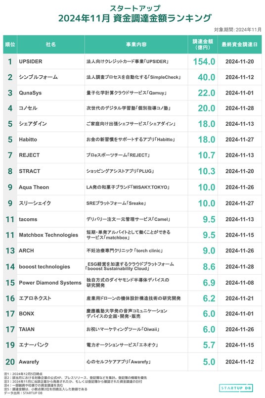・レポート記事:STARTUP DB (https://journal.startup-db.com/articles/funding-ranking-202411)