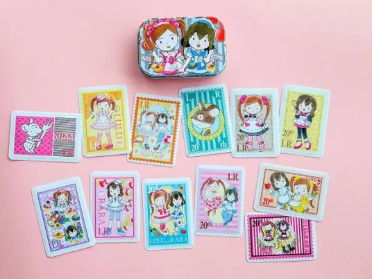 「ルルとララ」シリーズのおしゃれな缶入りステッカー。自分用はもちろん、お友達へのプレゼントにもピッタリ。