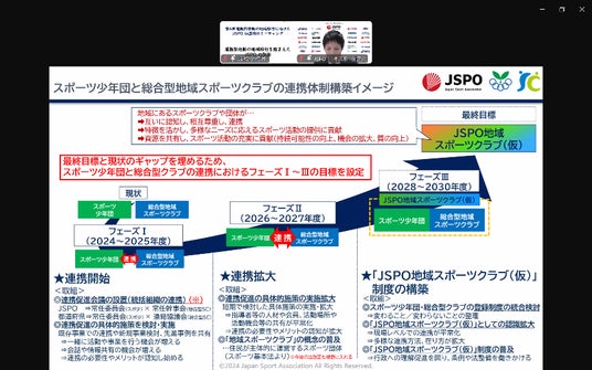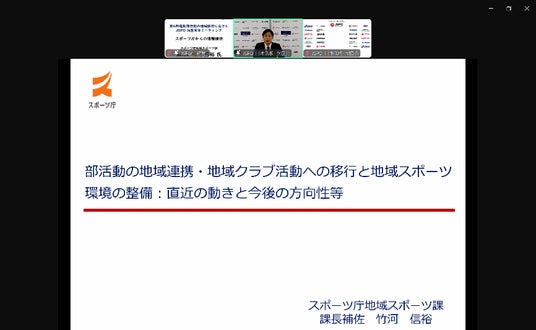 ミーティングでは、まずJSPOから、都道府県スポーツ協会を対象に実施した運動部活動改革に係る実態調査の概要報告やスポーツコーチングリーダーについて、スポーツ少年団と総合型地域スポーツクラブの連携体制の構築について説明を行いました。