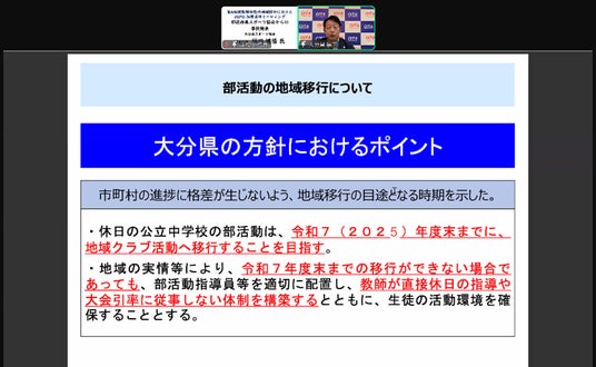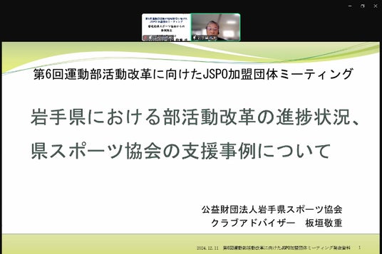 続いて、都道府県スポーツ協会における運動部活動改革に係る事例として、今回は代表して岩手県および大分県から発表いただきました。