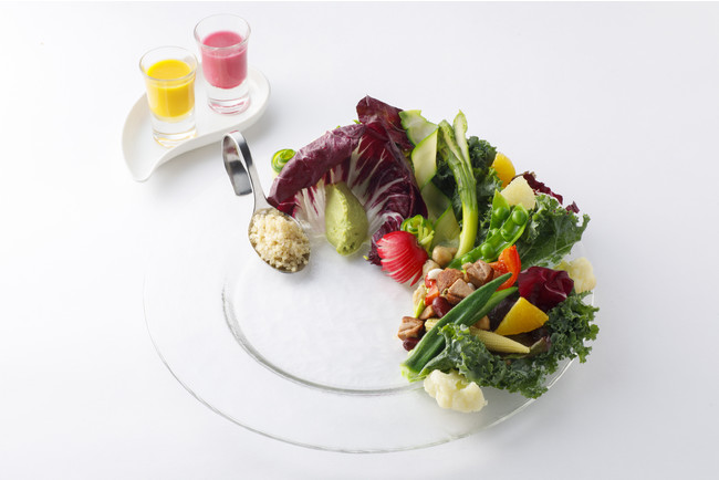 野菜をいっぱい食べたい方向けに、季節ごとのおいしい野菜を使用したランチセット、「大豆ミートとひよこ豆の彩りサラダ」が新登場します。