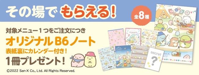 松屋フーズ(本社:東京都武蔵野市、代表取締役社長:瓦葺一利)では、2022年7月中旬より、牛めし・カレー・定食・その他丼の「松屋」、とんかつ専門店の「松のや・松乃家」、カレー専門店「マイカリー食堂」において、「すみっコぐらし」とコラボした「B6ノート」プレゼント、抽選で「オリジナルどんぶり」が当たるキャンペーンを実施いたします。