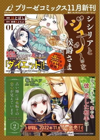 11月は『シシリアとジューシーな侯爵さま 1』と『占い師には花騎士の恋心が見えています 2』の2作品が発売!