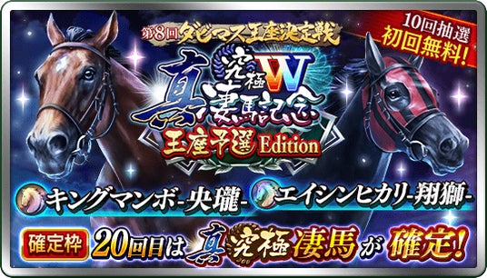 真究極凄馬として才能「King's Wind」を持つ★5「キングマンボ-央瓏-」、才能「一閃之光」を持つ★5「エイシンヒカリ-翔獅-」などが登場します。