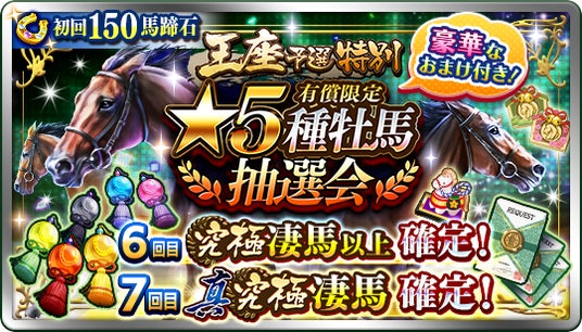 「王座予選特別 ★5種牡馬抽選会」を、2025年1月11日(土)0:00から2025年1月13日(月)23:59まで開催します。