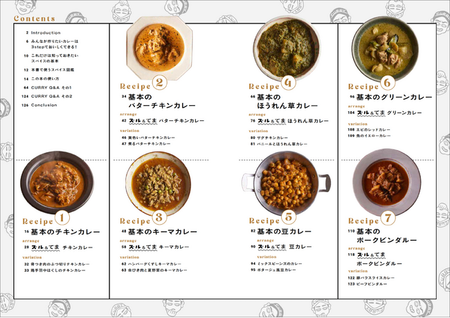 特に人気の高い「チキンカレー」「バターチキンカレー」「キーマカレー」「ほうれん草カレー」「豆カレー」「グリーンカレー」「ポークビンダルー」の7つのカレーを失敗ポイントや雑学を交えながら、“初心者向けに”ていねいに解説しています。また、誰でもかんたんにおいしくできる「ズルい」テクニックも掲載。ケチャップやチキンブイヨンの素、ソースなど、家にあるものを隠し味に使うことで、家カレーを格上げする方法も紹介。
