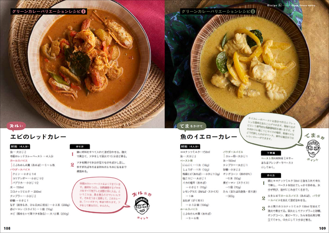 グリーンカレーのバリエーションレシピ、「エビのレッドカレー」と「イエローカレー」