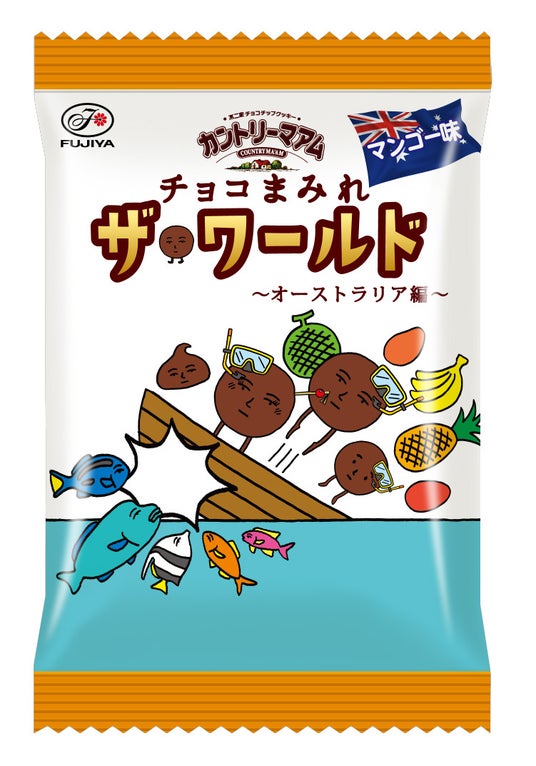今回は2月に真夏を迎えるオーストラリアを旅するまみれさんをイメージ。南国らしいマンゴー味のチョコまみれを期間限定で発売します。おいしく遊び心ある“まみれワールド”をぜひお楽しみください。