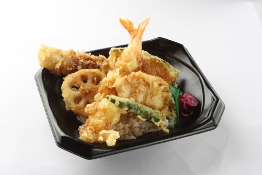 ジューシー鶏天やちくわハーフ天を盛り込んだ天丼。自家製の玉子たっぷりタルタルソースと特製天丼たれをお好みでかけてお楽しみいただけます。