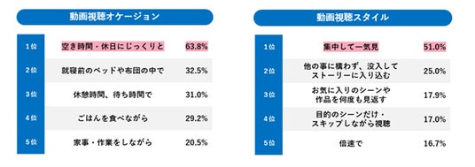 動画視聴スタイルは、全世代において「じっくり・集中して一気見」派が大半を占めています。視聴時間帯も21時~22時が多く、1日の終わりにじっくりと動画を見る人が多い傾向。タイパを意識した、“倍速視聴”や“ながら視聴”よりも、じっくり時間を掛けて視聴するスタイルが主流となっています。