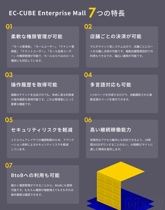 株式会社イルグルム(本社:大阪府大阪市北区 代表取締役:岩田 進、以下「イルグルム」)連結子会社の、株式会社イーシーキューブ(本社:大阪府大阪市北区代表取締役:岩田進、以下「イーシーキューブ」)は、特に構築要望が多い「モール型EC」と「多言語対応EC」に対応した大規模EC向け構築・運用サービス「EC-CUBE Enterprise Mall」と「EC-CUBE Enterprise Multilingual」を2024年10月1日より提供開始したことを発表いたします。